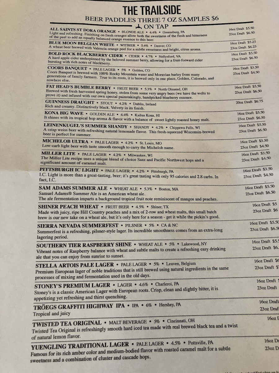 Pair your wrap with sides like Trailside Potato Chips or Sweet Pepper Coleslaw, creating a satisfying meal experience. Recent patrons have praised the food's freshness and the warm, inviting atmosphere of the bar. The friendly staff ensures that every visit feels like home, reinforcing the community spirit that defines this charming locale. Enjoy a refreshing Bluemoon on tap for just $3.50, rounding off your meal perfectly after a long day on the trails.